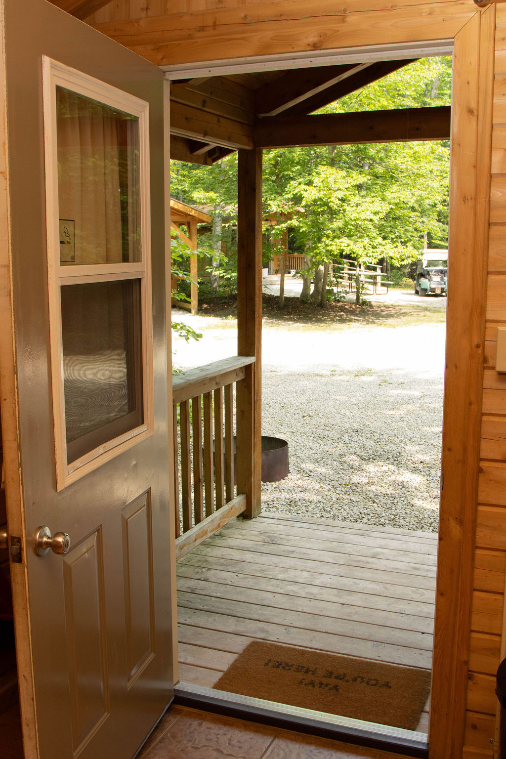 - Lights: there is electricity in the cabins but an outside lantern is helpful, or a candle lantern for a more authentic camping atmosphere. A flashlight or headlamp is handy.