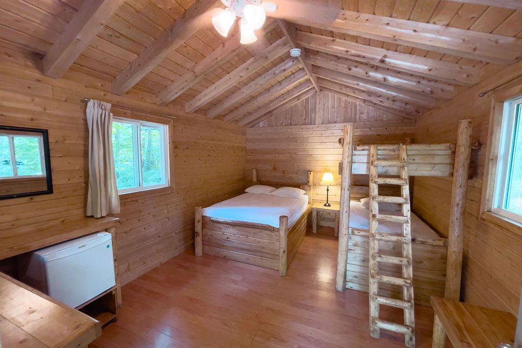 This camping cabin sleeps four, and you can enjoy everything the resort has to offer!